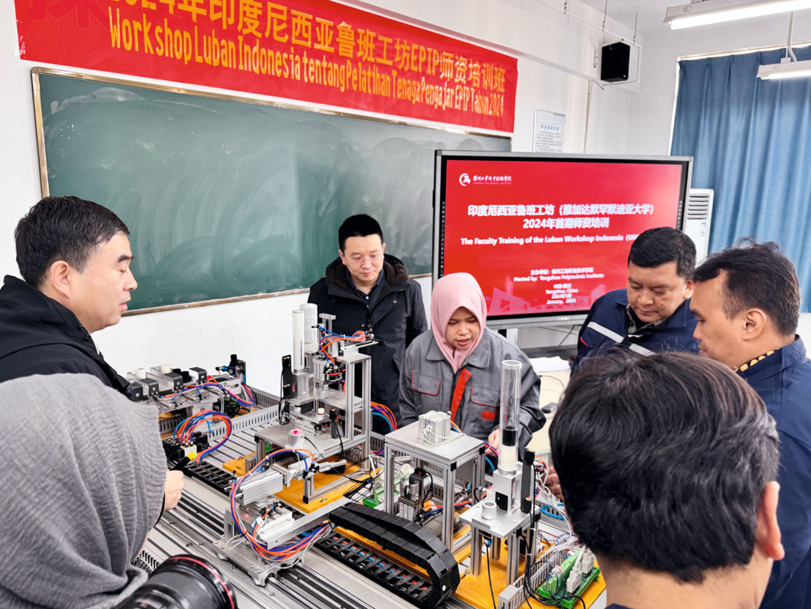 作者(中)在印度尼西亞“魯班工坊”師資培訓班接受培訓(作者供圖)
