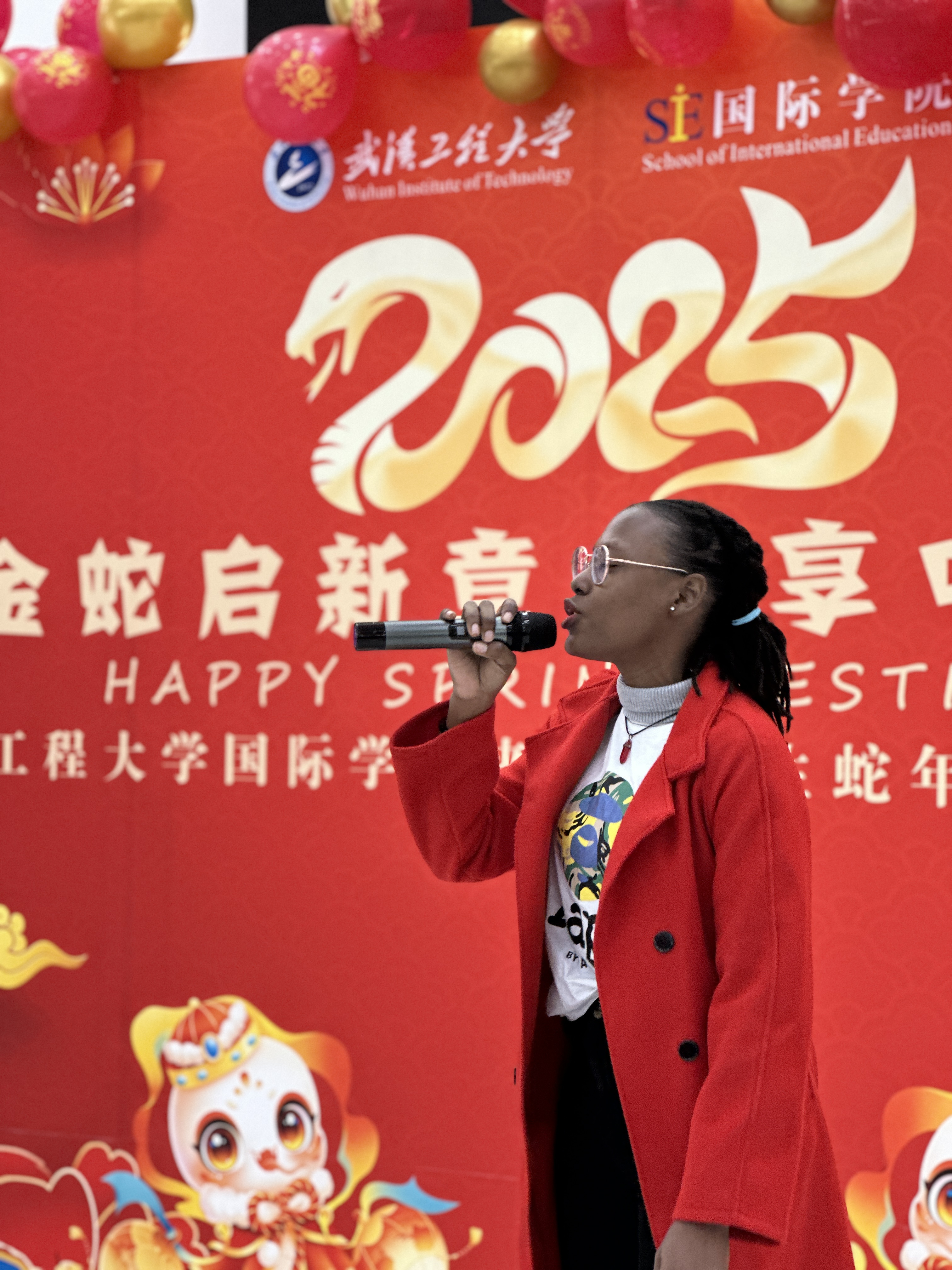 武漢工程大學黨委常委、副校長朱青林在致辭時表示,中國文化源遠流長,擁有著數千年的深厚底蘊,鼓勵來華留學生深入探索中國文化的豐富內涵,積極參與各類文化體驗活動,成為中外文化交流的友好使者,并為留校學生送上了真摯的春節祝福,祝愿同學們在新的一年里學業進步、生活順遂,在中國、在湖北、在武漢工程大學度過充實而美好的時光。