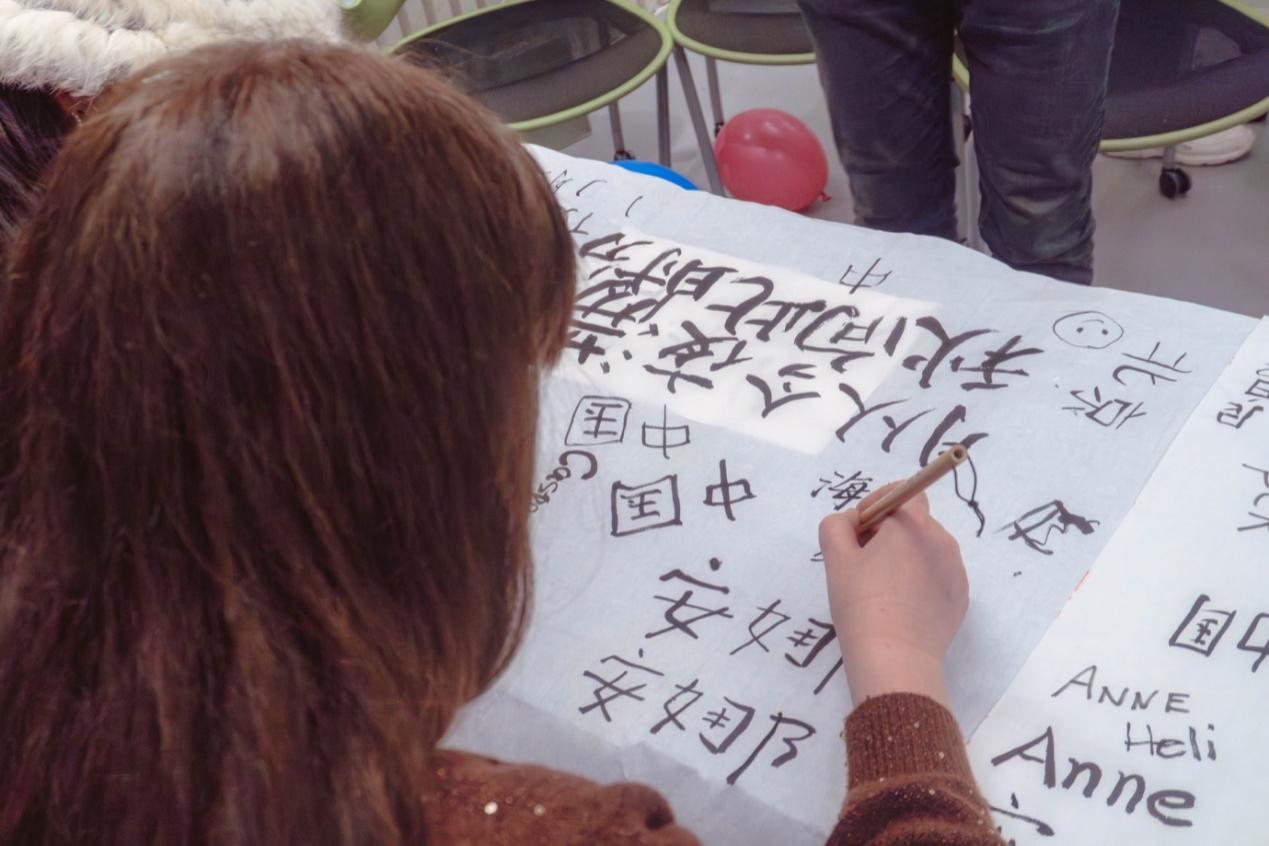 講述文化之聲,體驗則觸摸文化之肌。茶攤前,青年們捧杯細品東方待客之道;書法桌上,一筆一劃寫下中文名字,滿含成就與敬意;燈籠彩繪、扇面題字、木版拓印等非遺體驗區更是人頭攢動。一位參與者舉起“?!弊謭F扇笑道:“這不只是裝飾,更是祝福。”麻將體驗區更是歡聲不斷,初試“碰”“吃”“胡”的外國朋友們,在牌局中感受著中國民間智慧。