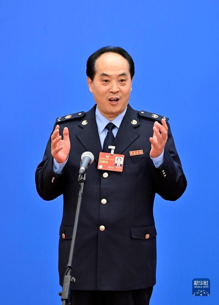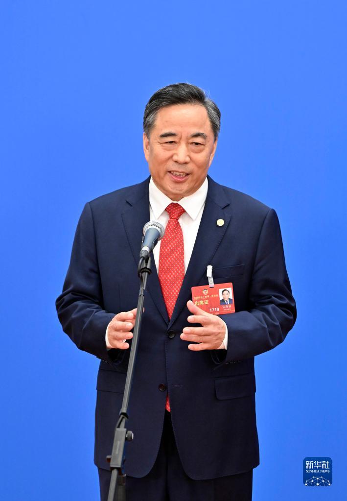 3月11日,全國政協十四屆一次會議第三場“委員通道”集體采訪活動在北京人民大會堂新聞發布廳舉行。這是全國政協委員范扎根接受媒體采訪。新華社記者 陳益宸 攝