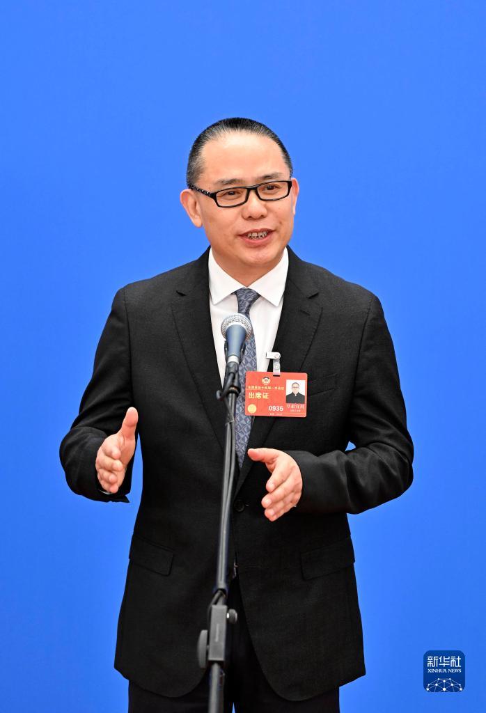 3月11日,全國政協十四屆一次會議第三場“委員通道”集體采訪活動在北京人民大會堂新聞發布廳舉行。這是全國政協委員韋朝暉接受媒體采訪。新華社記者 陳益宸 攝