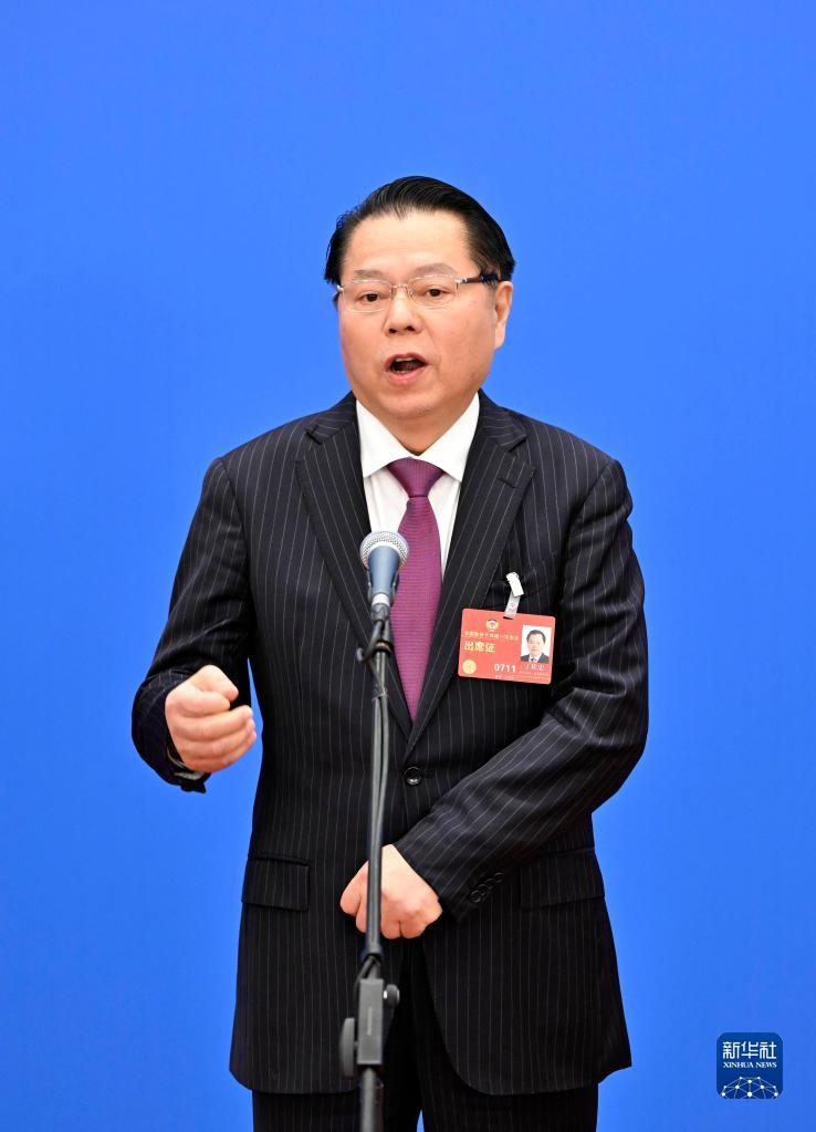 3月11日,全國政協十四屆一次會議第三場“委員通道”集體采訪活動在北京人民大會堂新聞發布廳舉行。這是全國政協委員丁佐宏接受媒體采訪。新華社記者 陳益宸 攝