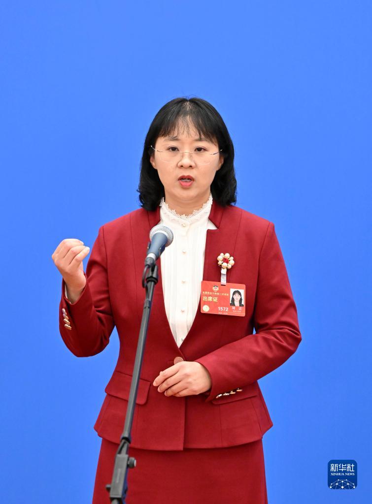 3月11日,全國政協十四屆一次會議第三場“委員通道”集體采訪活動在北京人民大會堂新聞發布廳舉行。這是全國政協委員余靜接受媒體采訪。新華社記者 陳益宸 攝