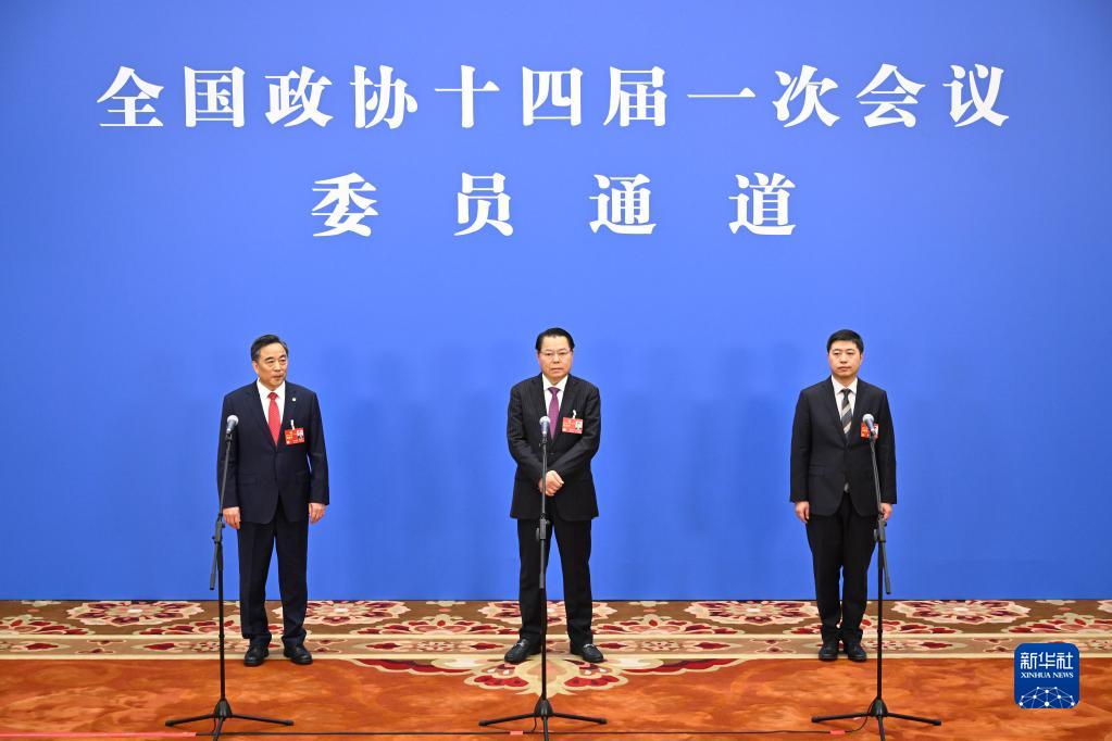 3月11日,全國政協十四屆一次會議第三場“委員通道”集體采訪活動在北京人民大會堂新聞發布廳舉行。新華社記者 陳益宸 攝