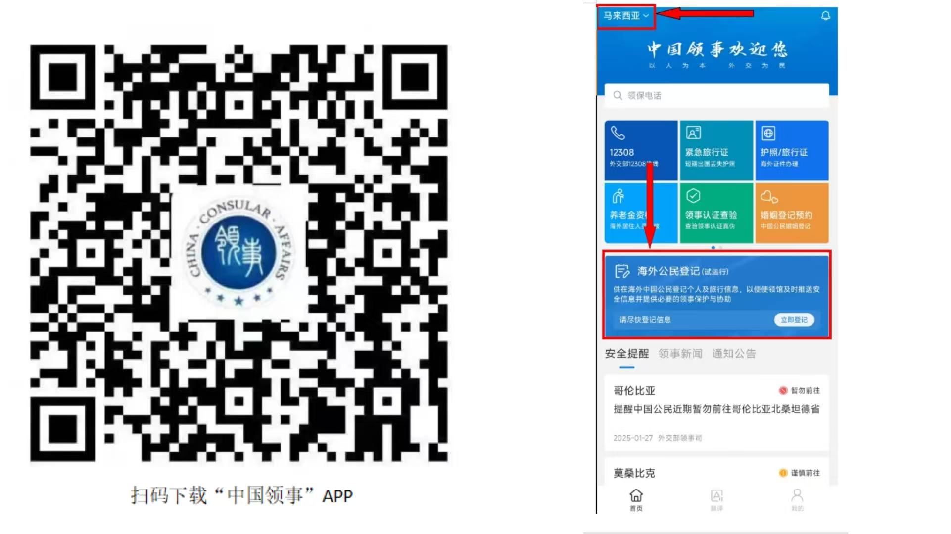 中國駐馬來西亞大使館提醒尚未登記的在馬同胞,盡快下載“中國領事”APP并參與登記。根據自己在馬居住地址選擇駐馬來西亞使館或對應總領館,填寫相關信息完成登記。請確保所填個人信息真實、準確、完整,所填信息將受到嚴格保護。駐馬使領館將根據信息登記情況,為在馬同胞提供及時、有效的領事保護與協助。