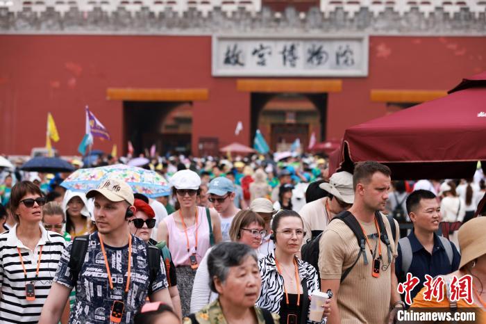 2024年7月9日,外籍游客參觀北京故宮博物院。隨著免簽“朋友圈”不斷擴容,以及144小時過境免簽政策的“加持”,中國入境游有明顯升溫。 中新社記者 賈天勇 攝
