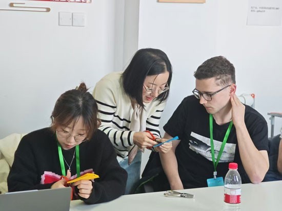 11月28日,逄思佳為澳大利亞伍倫貢大學訪學團的學生上“中國剪紙藝術”課。趙昆/攝