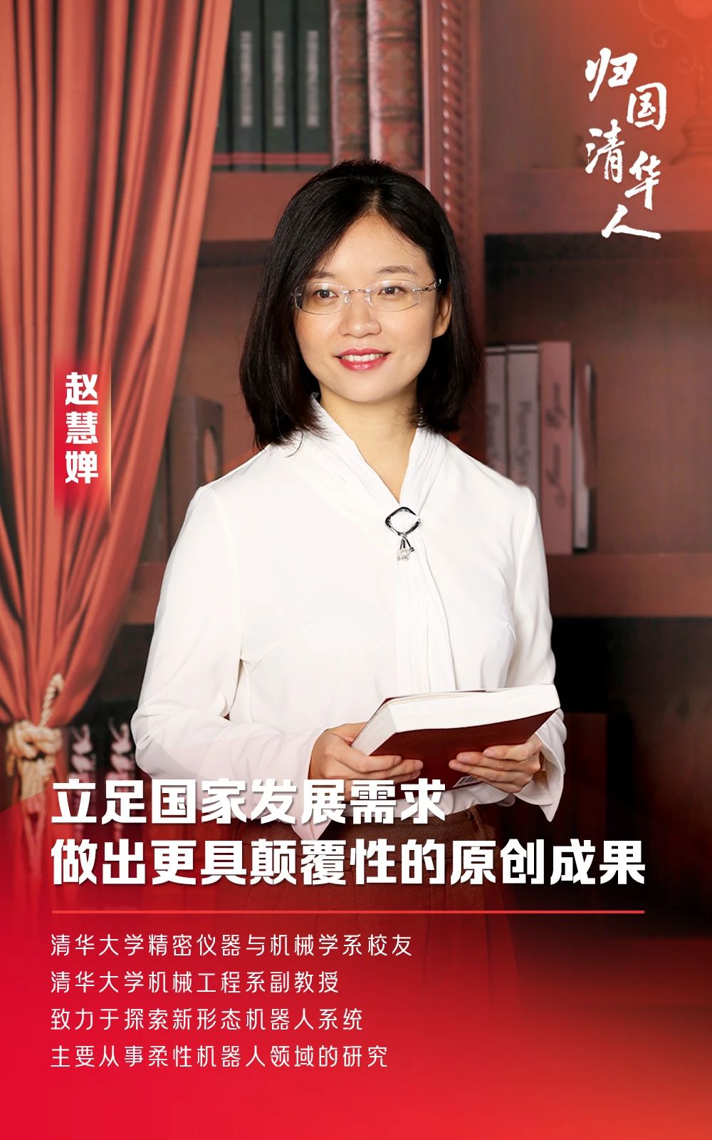 2018年,趙慧嬋回到清華機械系任教致力于探索新形態機器人系統,主要從事柔性機器人領域的研究。