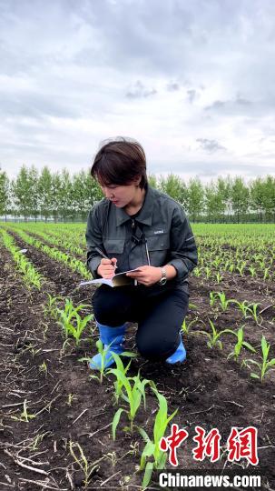 梅媚記錄種苗在田間生長狀況。 受訪者本人供圖