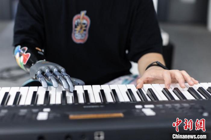 殘疾人使用智能仿生手彈琴。強腦科技供圖