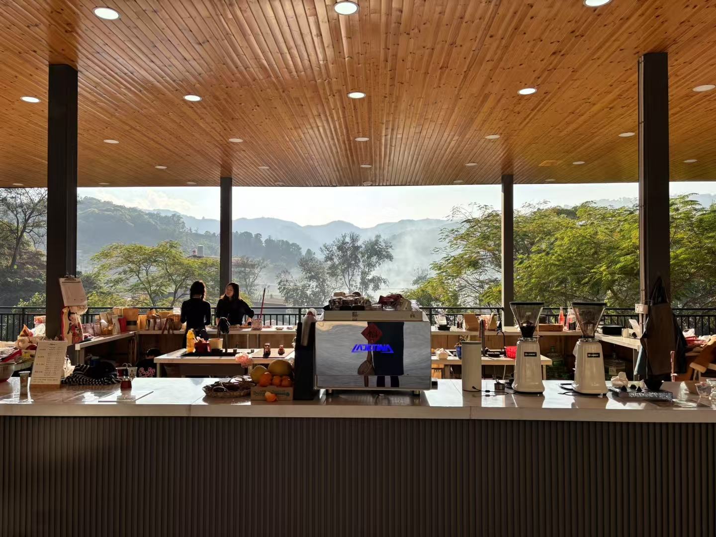 王雪薇為莊園取名“夏薇”,有開花結果的寓意。她的咖啡莊園坐落在離普洱市區不遠的山巒間,開闊的觀景臺抬頭即可見美麗的山景和云朵,在這里除了能品嘗香醇的咖啡,還可以培植咖啡苗、做手繪手工、體驗木版雕刻,學習咖啡研磨沖泡、開展“小小咖啡師”研學,互動參與感十足。