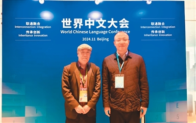 二〇二四年,吳憲(左)在北京參加世界中文大會。受訪者供圖